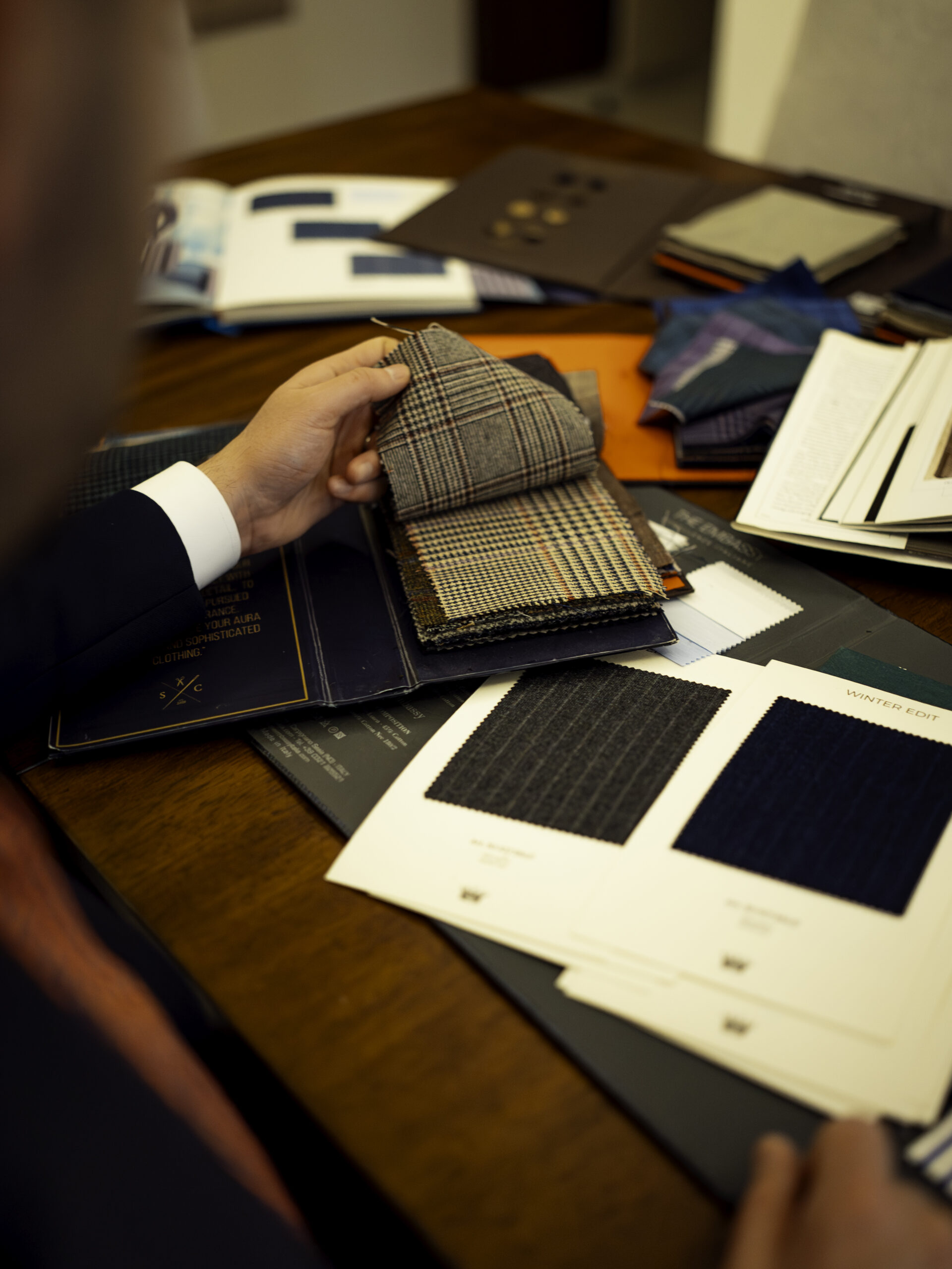 We work with an extensive selection of premium fabrics sourced from leading international mills, carefully chosen for their comfort, durability, and elegance.